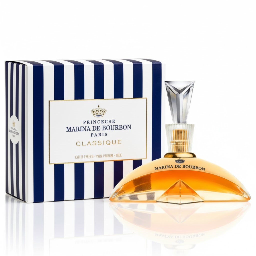 Classique Marina de Bourbon é um Perfume feminino que é, antes de tudo, sinônimo de classe e elegância. É a primeira fragrância de Princesse Marina de Bourbon. Marcante e sofisticada, para uma mulher elegante. O perfume Marina de Bourbon carrega em si toda a realeza de sua descendência. Nobre, de caráter decidido, possui a elegância natural de uma época onde o refinamento determinava o sucesso.
